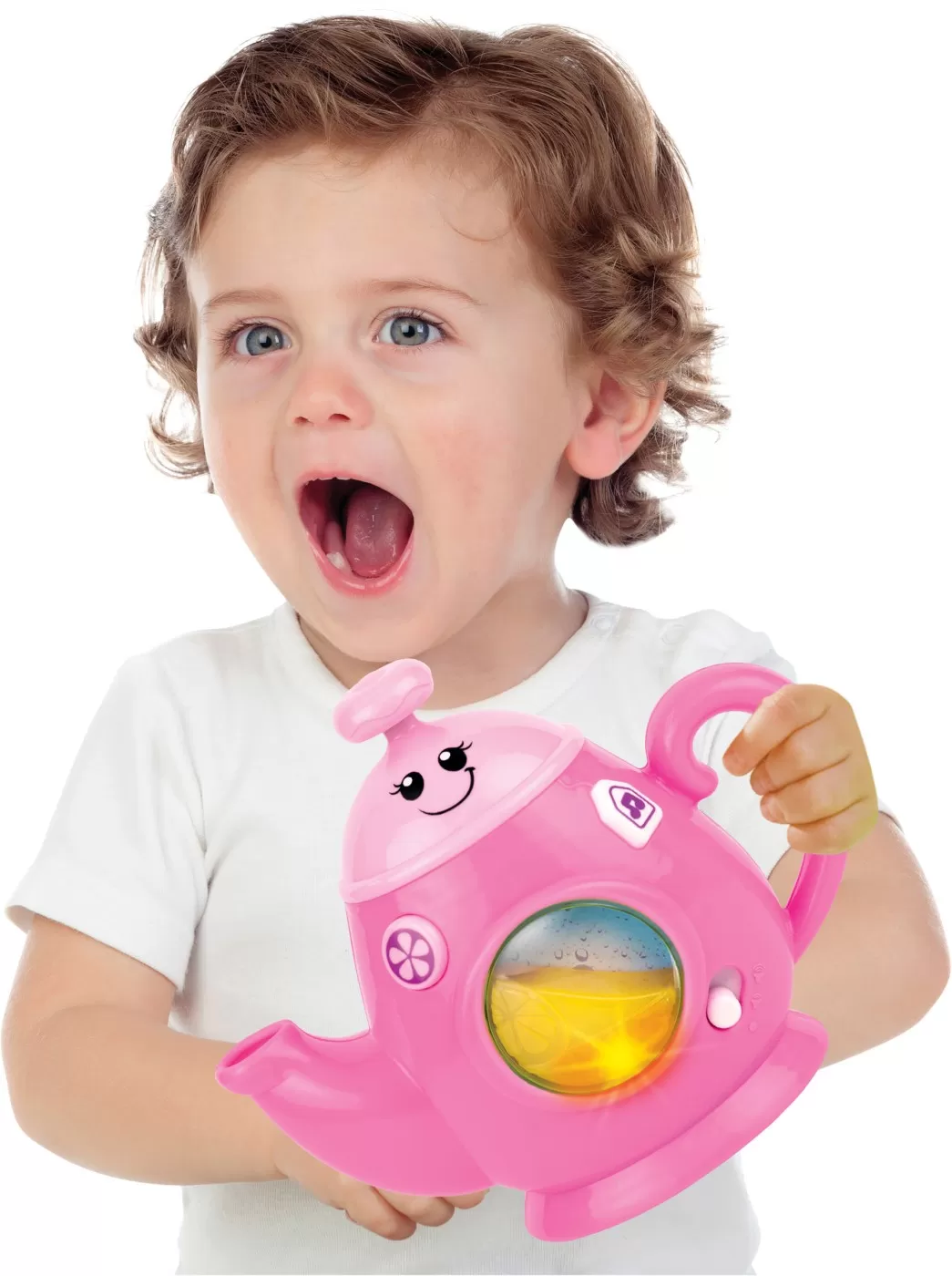 Setul de Ceai este o jucarie incantatoare si educativa, destinata copiilor in varsta de 18 luni si mai mari. Acest set de ceai interactiv ofera o experienta de joaca plina de veselie si invatare, combinand sunete, lumini si activitati tactile pentru a stimula dezvoltarea celor mici. Setul include un ceainic special, conceput pentru a emite sunete amuzante si a produce lumina intermitenta atunci cand este inclinat pentru a turna ceai. Lumina intermitenta adauga un element vizual captivant, facand experienta de joaca si mai atractiva. Pe ceainic se afla un buton in forma de pliculet de ceai, care, atunci cand este apasat, reda melodii vesele. Aceste melodii sunt placute si antrenante, stimuland simtul auditiv al copiilor. De asemenea, setul include un buton in forma de lamaie, care declanseaza fraze amuzante si efecte sonore atunci cand este apasat. Setul contine trei tipuri de prajituri ce pot fi stivuite briose, biscuiti si gogoasa, toate in culori vibrante care atrag imediat atentia copiilor. Aceste prajituri pot fi stivuite una peste alta, incurajand coordonarea mana-ochi. Parintii pot folosi jucaria pentru a invata copiii despre culori, sunete, si concepte de echilibru, creand momente valoroase de invatare si legatura afectiva. Prin combinatia sa de sunete, lumini, si activitati tactile, aceasta jucarie ofera o experienta multisenzoriala care stimuleaza toate simturile copiilor.