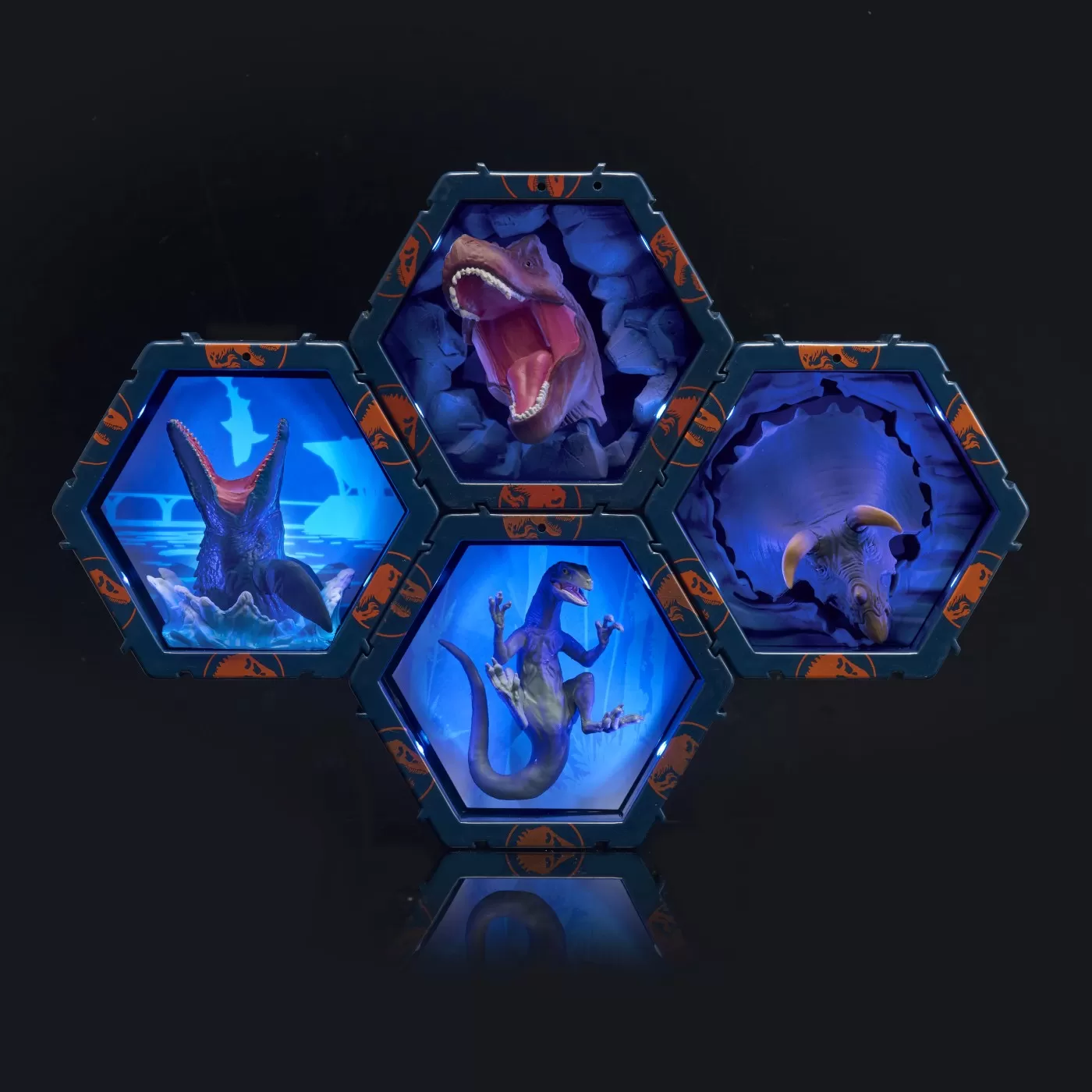Fiecare personaj este situat in propriul POD in forma de hexagon cu lumini UV si senzor IR incorporat. Pur si simplu miscati mana peste senzor pentru a lumina WOW-ul! POD-ul! Misca-ti mana in fata POD-ului pentru a-l lumina si a dezvalui pictograme ascunse in spatele WOW!Pod-ului! Lumina se stinge automat dupa 30 de secunde. Conectati-le in cateva secunde! Colectia ta poate lua diferite forme si avea in fiecare zi, alt look! Limita e doar de imaginatia ta! Puteti chiar sa va scrieti numele sau initialele pentru a crea un afisaj care este fara indoiala si unic al dvs.! Colectionati si conectati personajele favorite printr-o colectie mai vasta de eroi WOW! PODS! Sunt disponibile personaje Marvel, DC, Disney, Disney Frozen, Sonic, Jurassic World, Harry Potter, Minionii si altele. Acest pachet contine personajul Triceratrops.