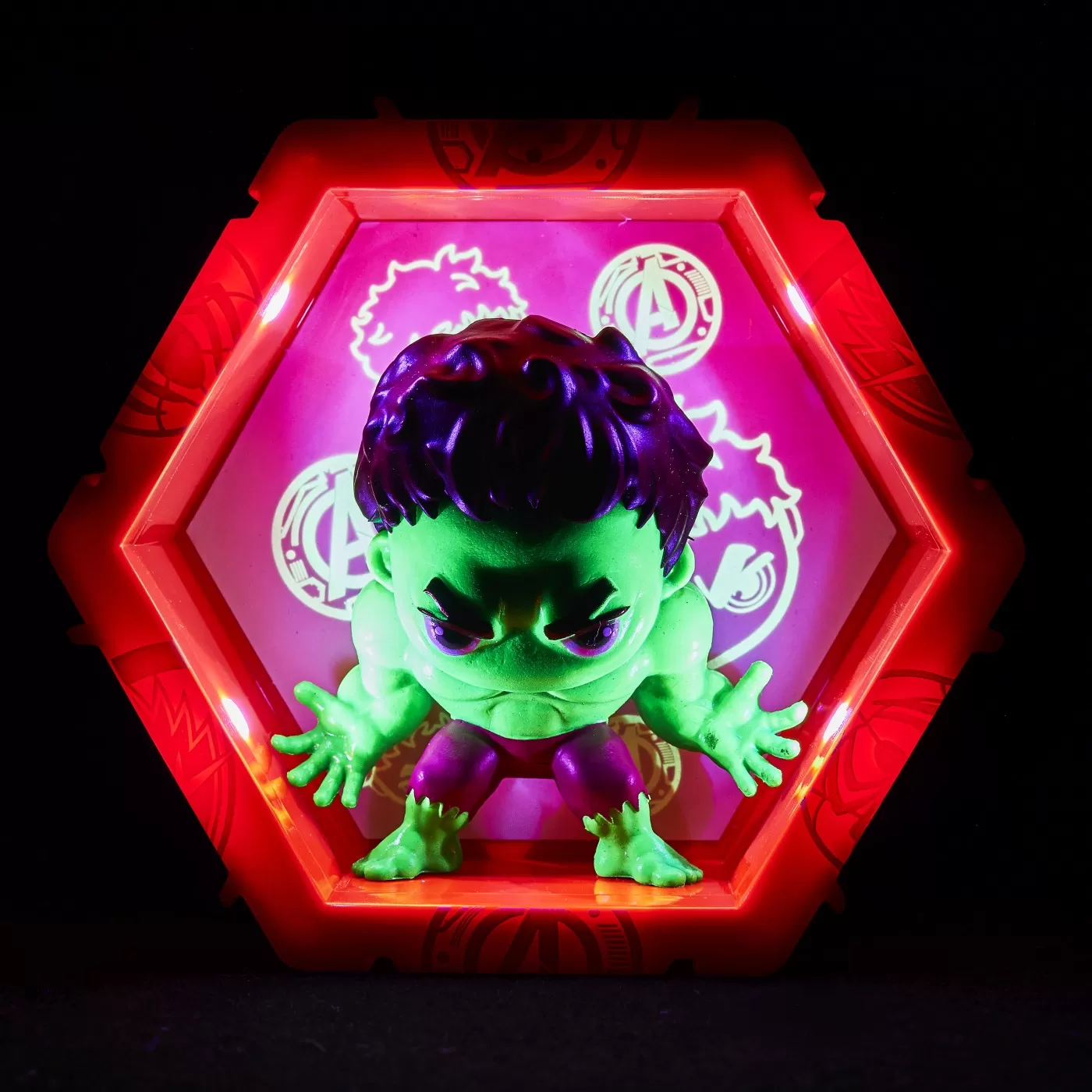 Fiecare personaj este situat in propriul POD in forma de hexagon cu lumini UV si senzor IR incorporat. Pur si simplu miscati mana peste senzor pentru a lumina WOW-ul! POD-ul! Misca-ti mana in fata POD-ului pentru a-l lumina si a dezvalui pictograme ascunse in spatele WOW!Pod-ului! Lumina se stinge automat dupa 30 de secunde. Conectati-le in cateva secunde! Colectia ta poate lua diferite forme si avea in fiecare zi, alt look! Limita e doar de imaginatia ta! Puteti chiar sa va scrieti numele sau initialele pentru a crea un afisaj care este fara indoiala si unic al dvs.! Colectionati si conectati personajele favorite printr-o colectie mai vasta de eroi WOW! PODS! Sunt disponibile personaje Marvel, DC, Disney, Disney Frozen, Sonic, Jurassic World, Harry Potter, Minionii si altele. Acest pachet contine personajul Hulk.